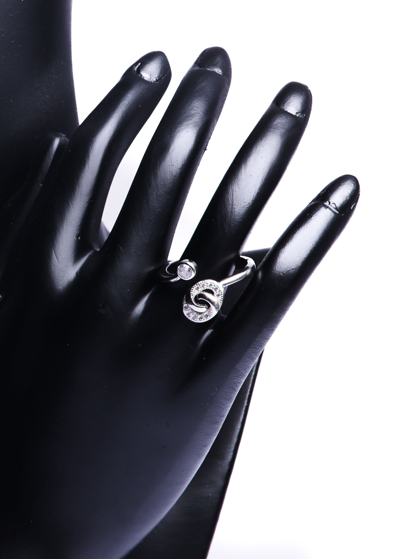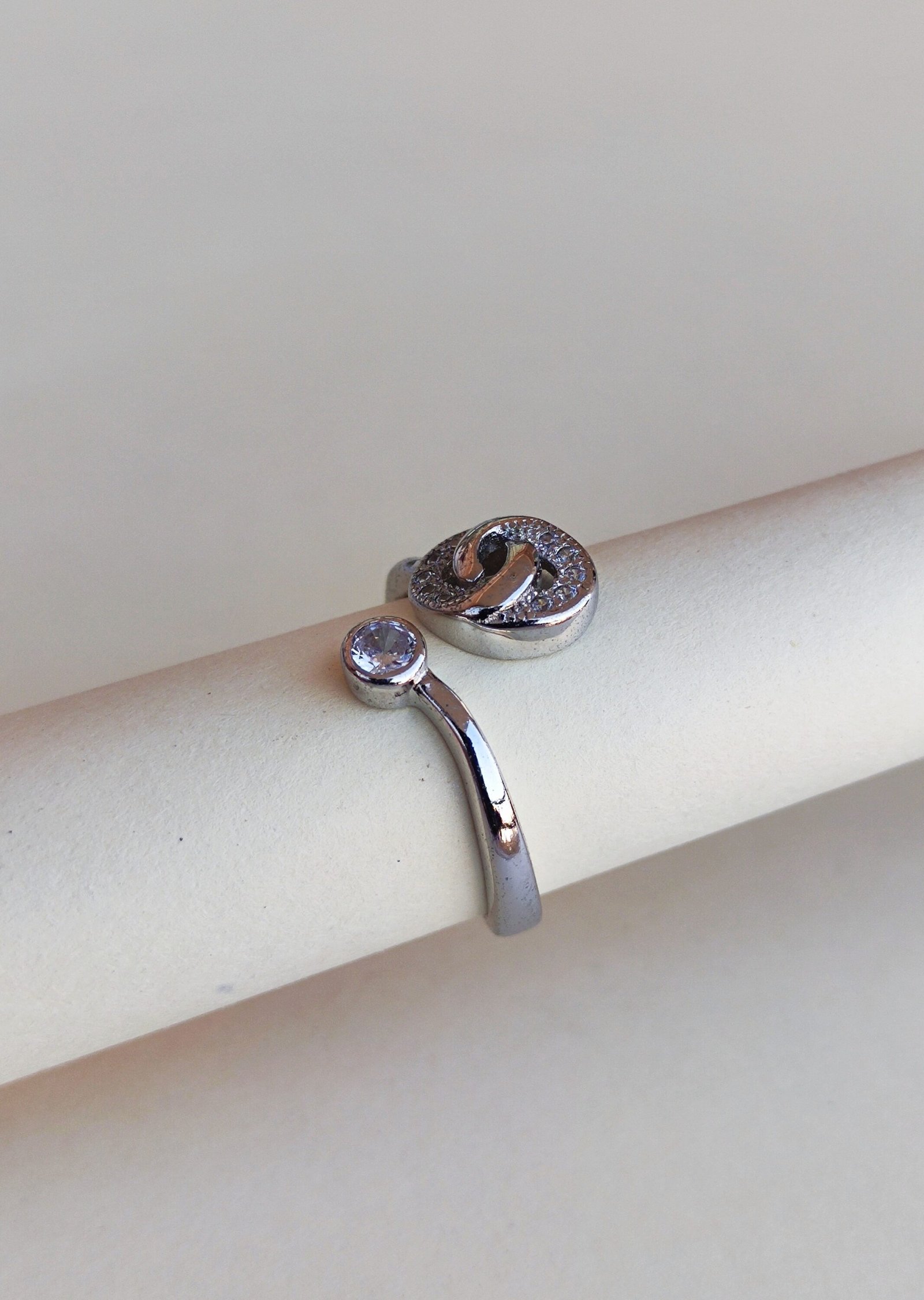 Modern and symbolic, the Eternal Twist Ring is crafted in sterling silver with an open design featuring a sparkling crystal on one end and a pavé-studded spiral on the other. Its intertwined twist represents infinity, unity, and everlasting bonds, making it both meaningful and stylish. A versatile piece that blends contemporary elegance with timeless symbolism.