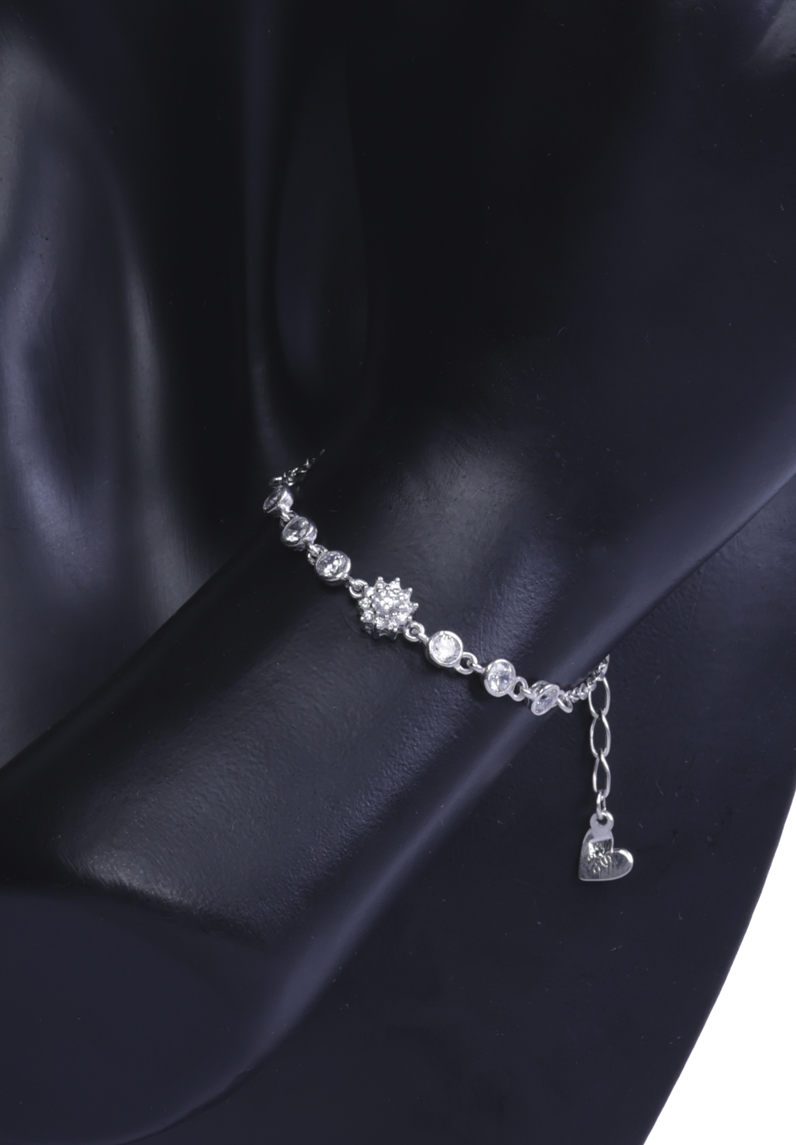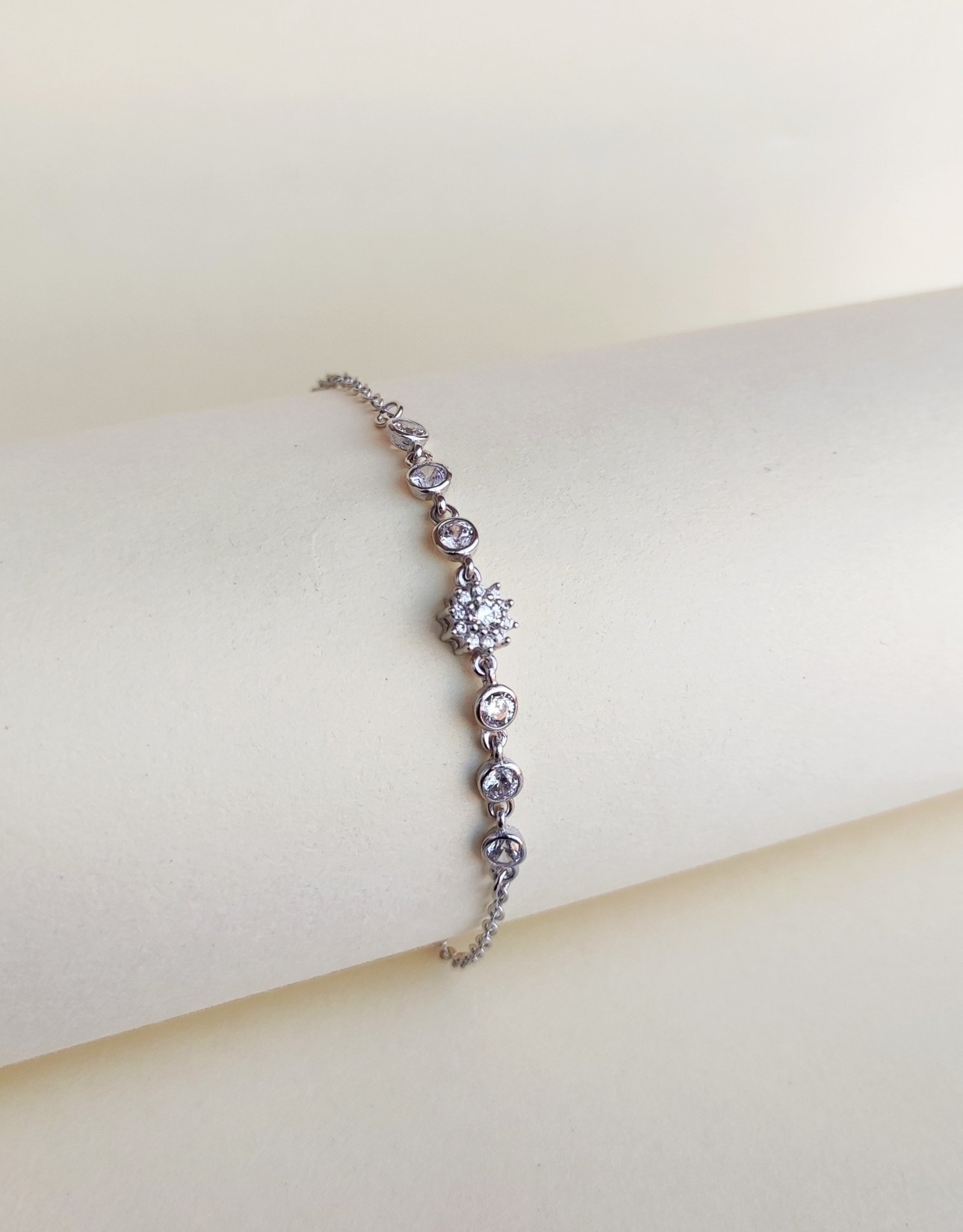 Radiant and graceful, the Galaxy White Rose Bracelet is crafted in sterling silver and adorned with a luminous white rose-shaped centerpiece surrounded by a trail of shimmering crystals. Inspired by cosmic beauty and floral elegance, this piece symbolizes purity, infinity, and timeless charm. Finished with an adjustable chain and delicate heart charm, it’s both meaningful and sophisticated.